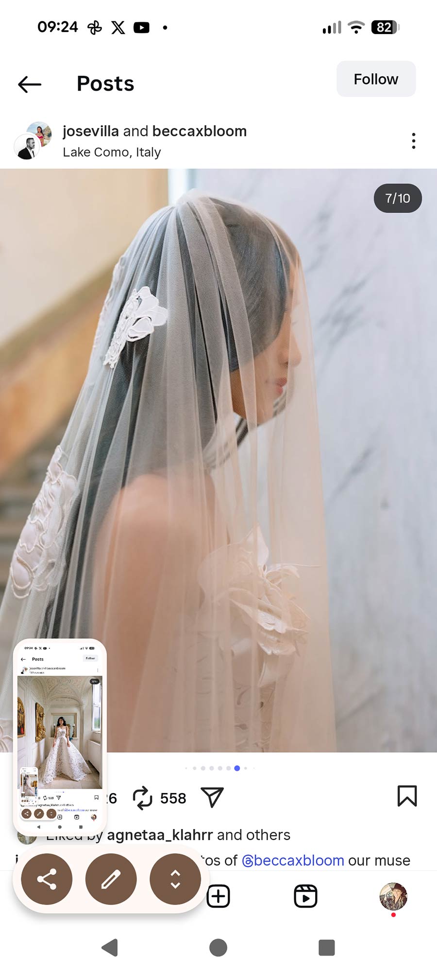 And on the subject of lace — significantly Italian lace — the artistry speaks for itself. Areas like Venice, Burano, and Como have centuries-old traditions of lace craftsmanship. Sporting a veil made there isn’t just about style, however about connecting with historical past and heritage.