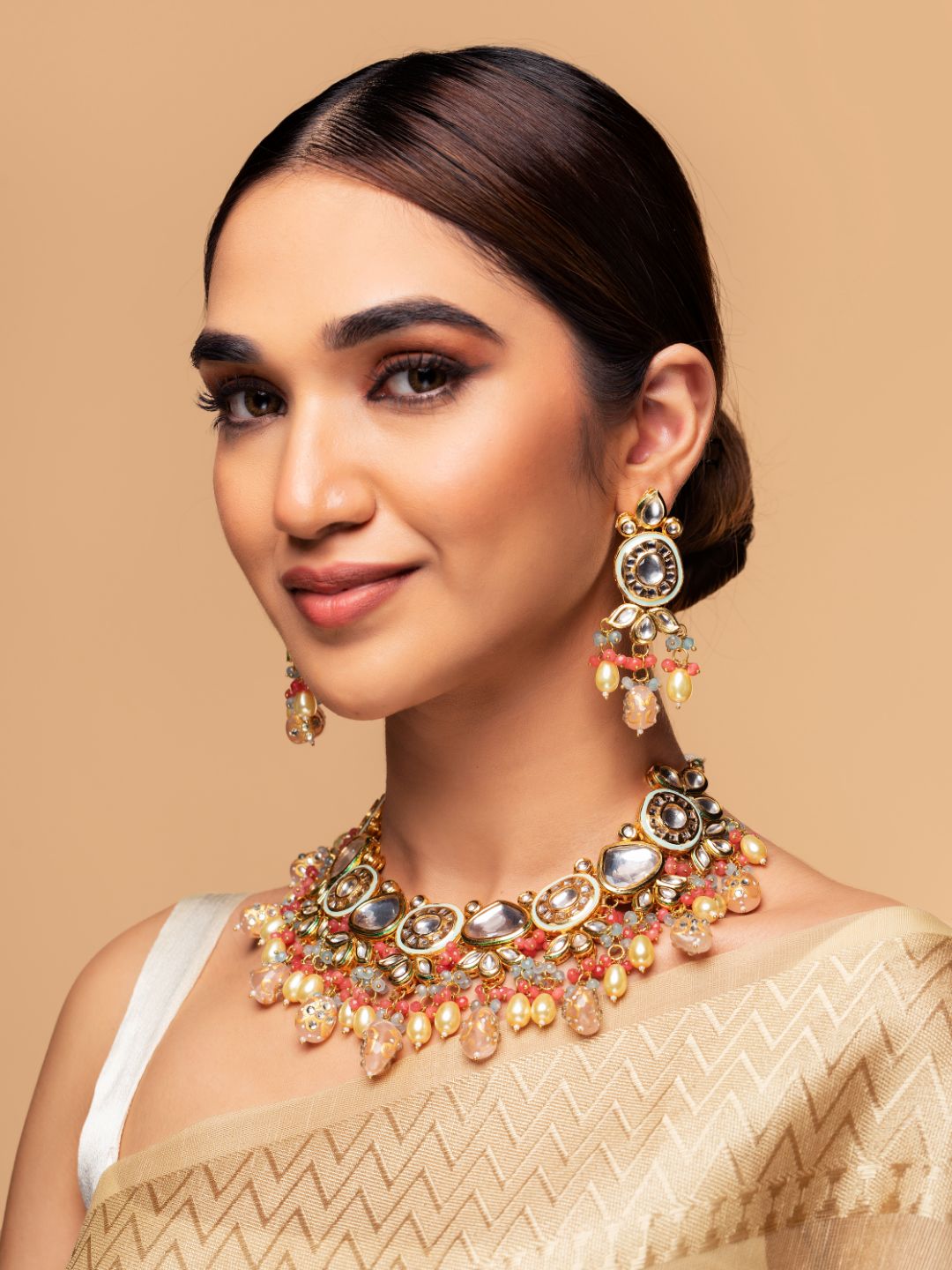 Priyaasi Gulabo-Multi-Coloration Beads Pearls Kundan Gold Plated Choker Set
