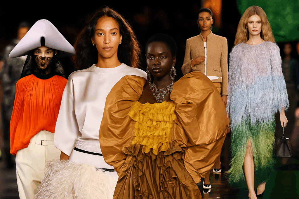 - Main Tendencies: Structured sensuality, earthy palettes, tech-infused tailoring